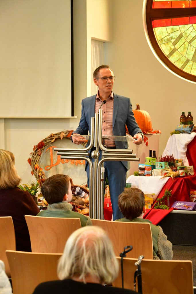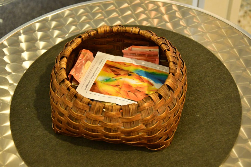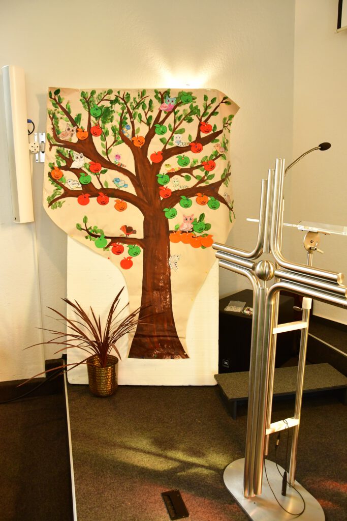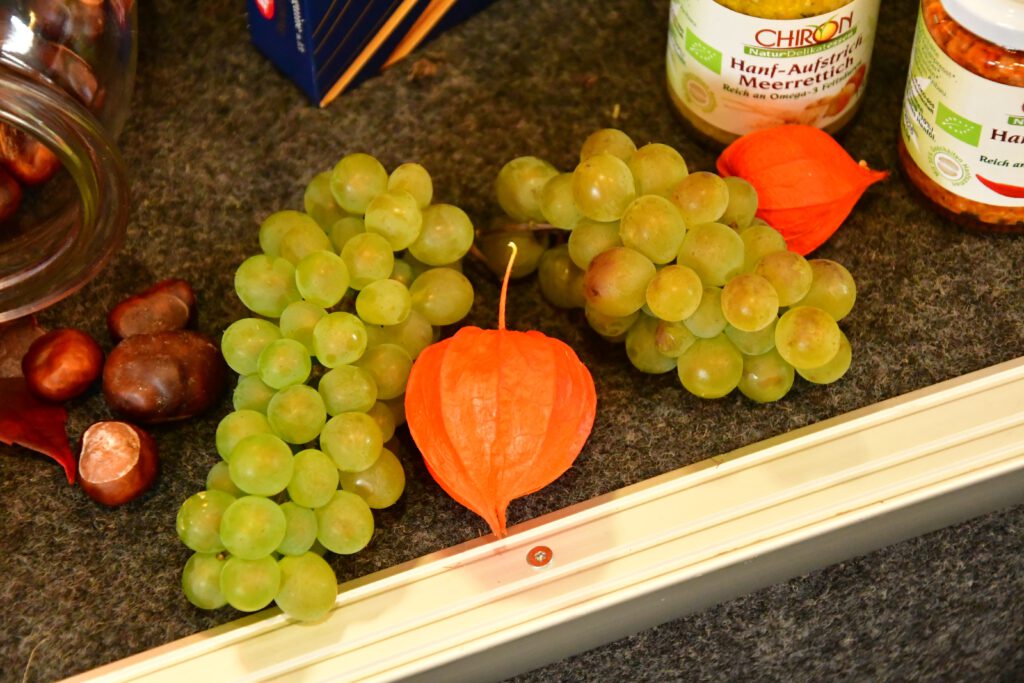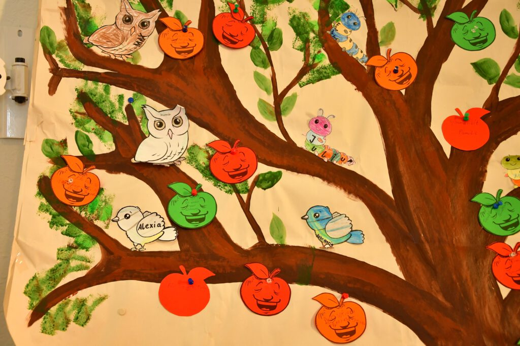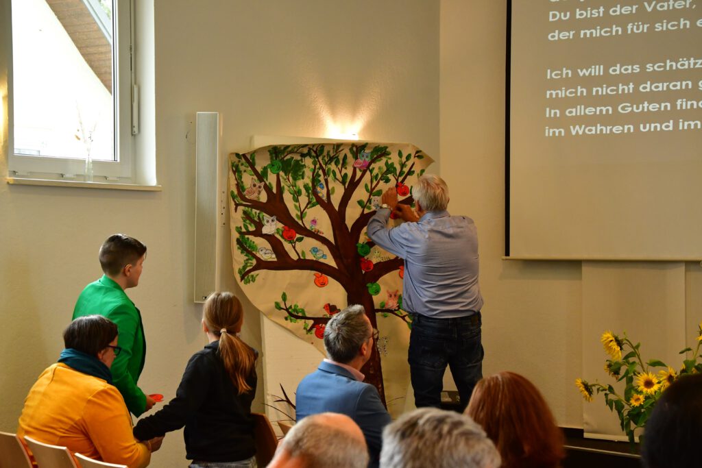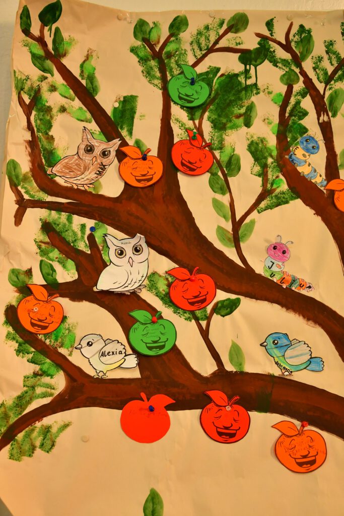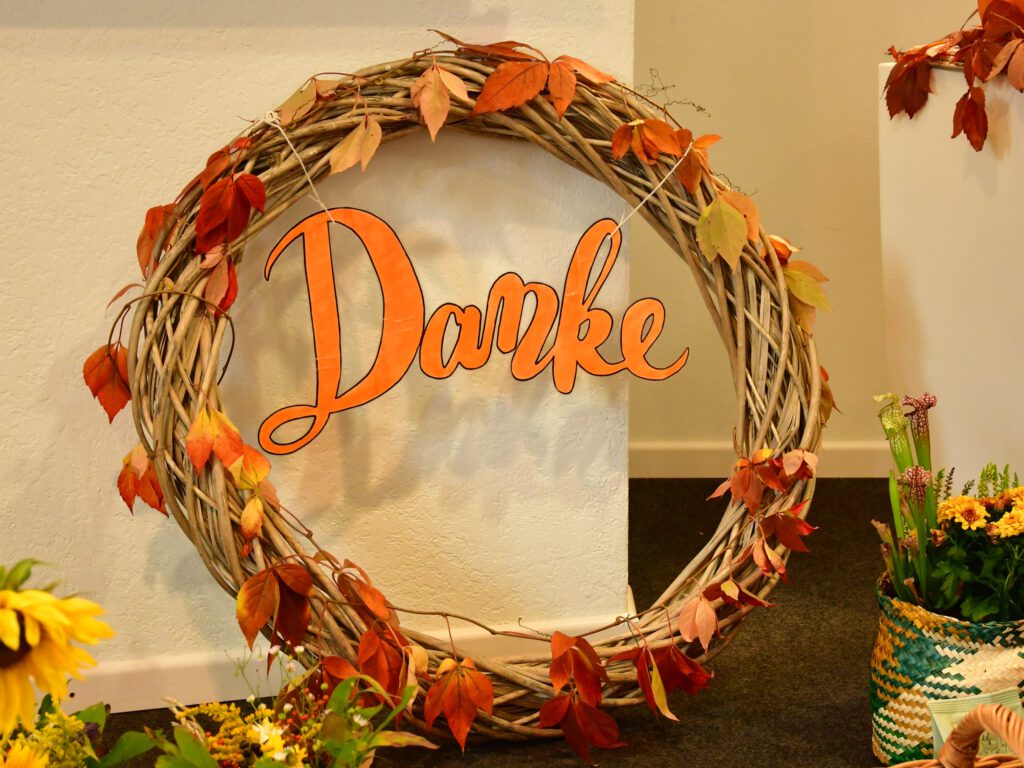 Auf die Äpfel wurde ein Dank aufgeschrieben, …