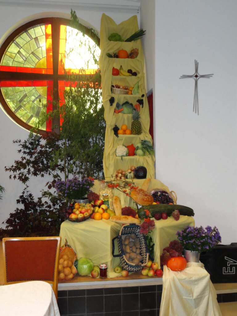Nachdenkenswert fand ich die künstlerische Gestaltung eines Erntedanktisches durch ein Mitglied unserer Gemeinde. Für mich drückte dies Wertschätzung, Ehre und Dank gegenüber Gott aus.